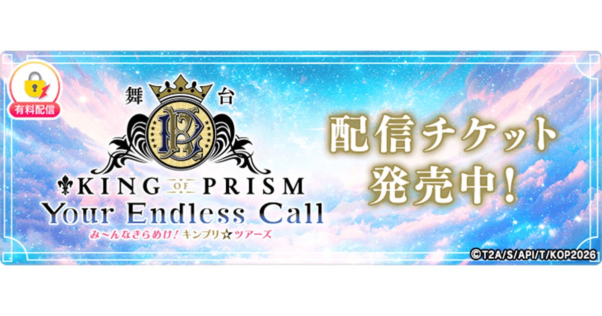 2026年2月21日(土)より上演される舞台「KING OF PRISM-Your Endless Call-み~んなきらめけ!キンプリ☆ツアーズ」の千秋楽公演を「ミクチャ」で独占生配信することが決定しました。配信チケットにはアーカイブ視聴が付き、公演終了後から2026年3月15日(日)23:59まで何度でも舞台をお楽しみいただけます。