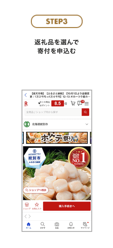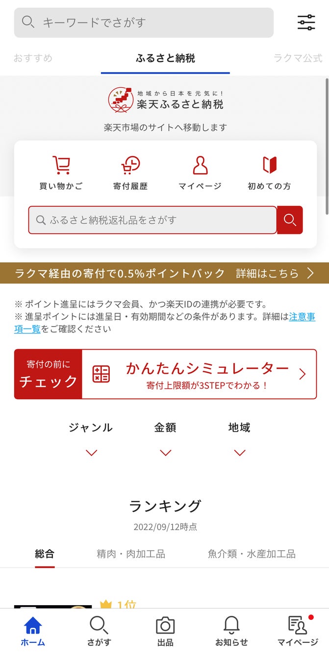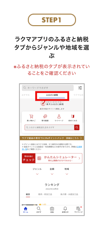 ※ふるさと納税タブはラクマアプリバージョン 8.7.0以上でご利用いただけます。