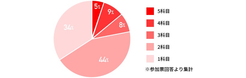 科目合格以上内訳:5科目6名、4科目12名、3科目10名、2科目55名、1科目42名