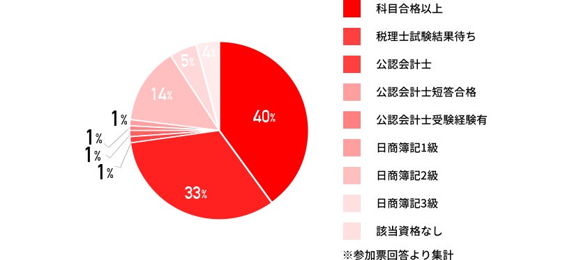 日商簿記1級3名、日商簿記2級45名、日商簿記3級17名、該当資格なし11名