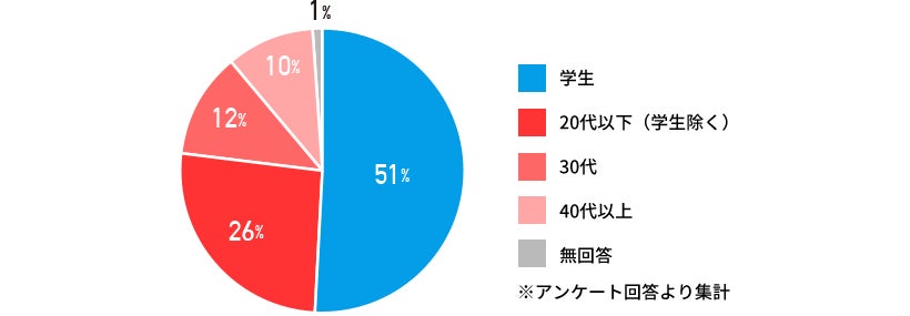 年代:学生154名、20代以下(学生除く)79名、30代38名、40代以上30名、無回答2名