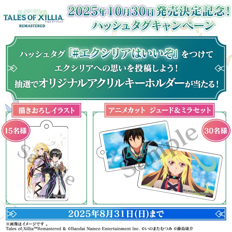 株式会社バンダイナムコエンターテインメントは、「テイルズ オブ エクシリア リマスター」をNintendo Switch™/PlayStation®5/Xbox Series X|S/STEAM®にて、2025年10月30日に発売することをお知らせいたします。「アナウンスメントトレーラー」、「プロデューサーメッセージ」を公開しました。また、製品サイトを公開し、「超特装版」を含むパッケージ版の予約を開始しました。