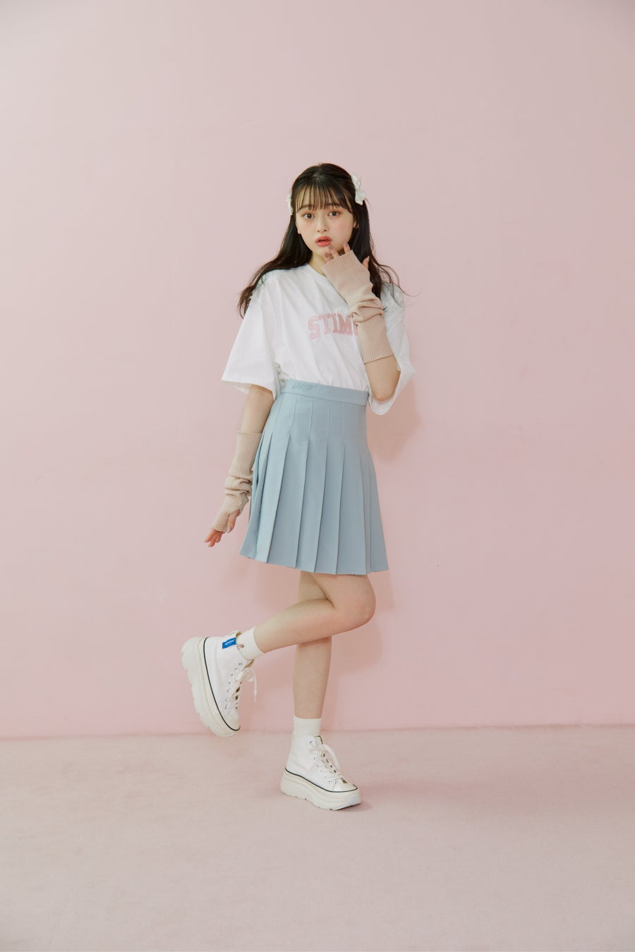 ウエストにはゆななコラボ限定刺繍がちらりと見える人気のハイウエストプリーツスカート