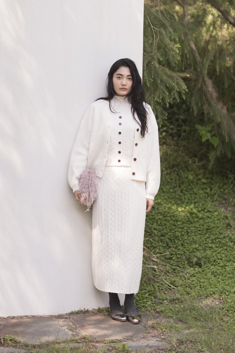カーディガン¥4,947/ビスチェ¥3,297/ニット¥2,747/スカート¥5,497/バッグ¥3,957/シューズ¥4,397