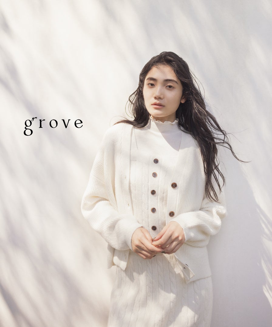 全国のショッピングセンターを中心に、オフィスシーンからデイリーまで活躍するフェミニンカジュアルを展開するブランド「grove(グローブ)」は、幅広い女性に支持される着回し力の高いトレンドアイテムを多数ご提案しております。