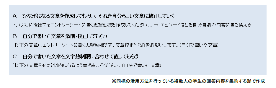 【図6】エントリーシート作成のためのChatGPTなどの対話型AI活用の例