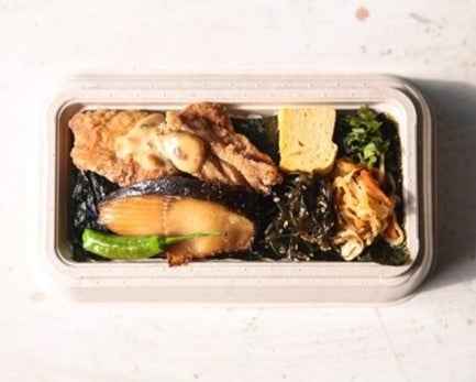 特別栽培米つや姫に有明産の海苔を敷き詰めた、“カラダに優しい”と“美味しい”を重ねた“フクモリののり弁”。