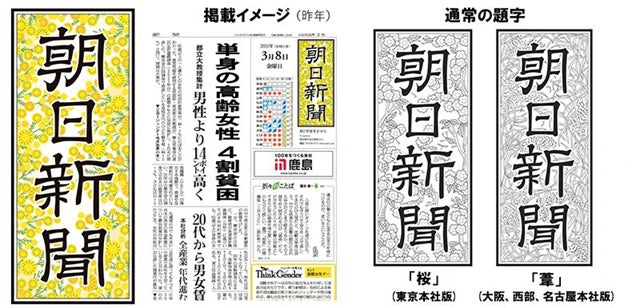 国際女性デーの朝日新聞の題字は「ミモザの花」の特別デザインに