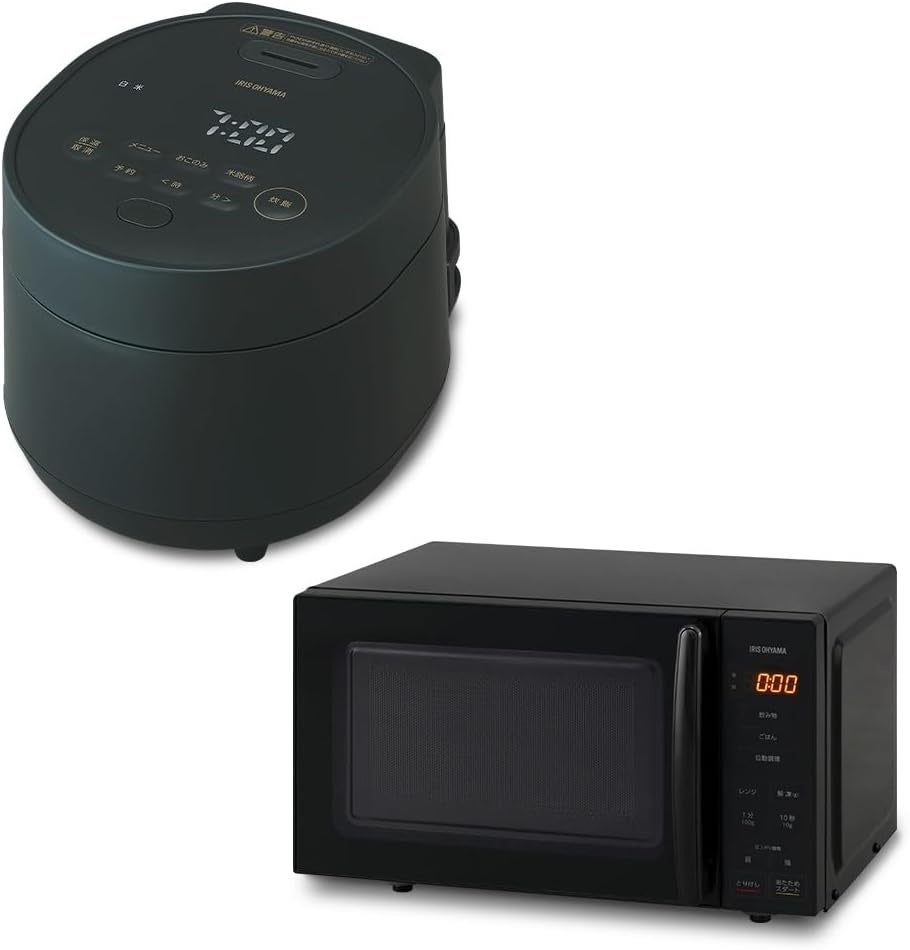 アイリスオーヤマの電子レンジと炊飯器の2点セットです。電子レンジは、庫内ひろびろ設計で、ピザやお弁当など大きい食品もそのままあたため可能。炊飯器は、「もっちり」「ふんわり」「粒立ち」など、自分好みの食感に仕上がる炊き方を選ぶことができ、ごはんをさらにおいしく炊き上げます。