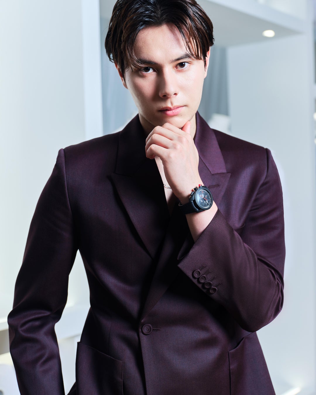ディオール アンバサダーの髙橋藍は、2024年ウィンター メンズ コレクションからバーガンディのバージンウールツイルで仕立てた「バー」ジャケットに同色のパンツを纏い、「ディオール コンバット」ダービーシューズと、ディオール タイムピーシズから「シフル ルージュ」ブラック ウルトラマット クロノグラフを合わせました。