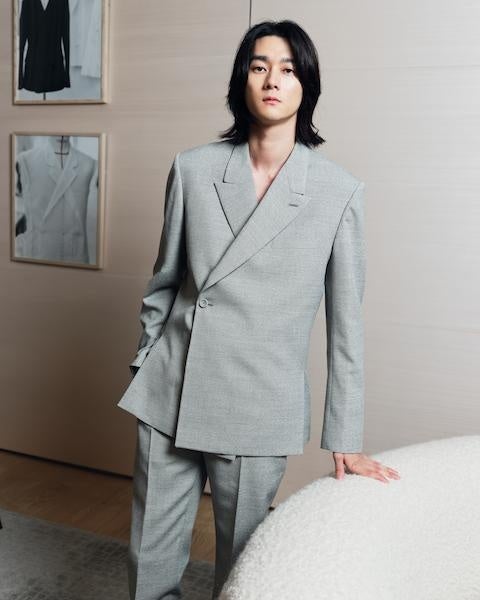 柳俊太郎は、2024年ウィンター メンズ コレクションからグレーの「バー」ジャケットに同色のパンツを纏い、ブラックの「ディオール タンデュ」バレリーナシューズを合わせました。