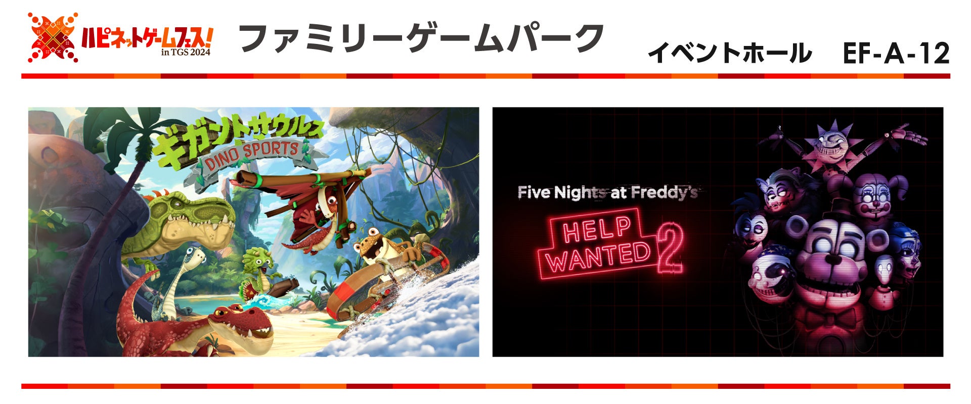 イベントホールのファミリーゲームパークには「ギガントサウルス ディノ・スポーツ」「Five Nights at Freddy’s: Help Wanted 2」の2タイトルを出展します。ご家族揃ってぜひ遊びに来てください!
