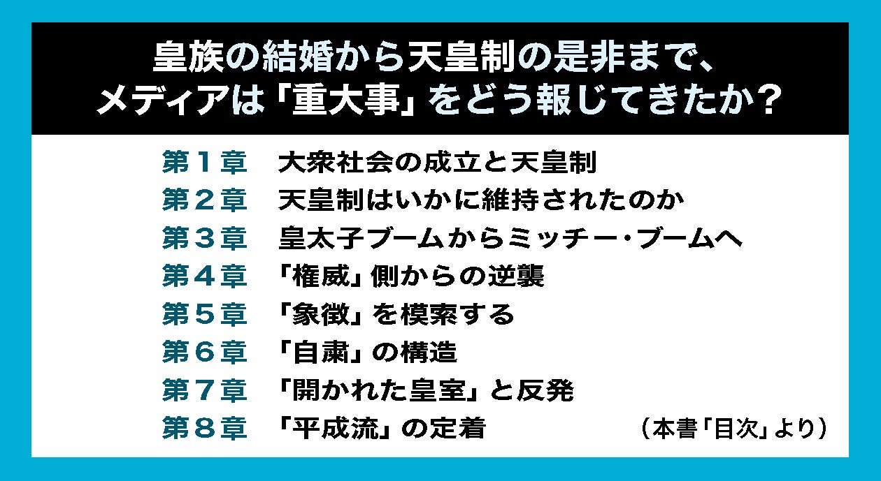 今後も継承問題などで関心の的であり続ける皇室と、SNSも含めて私たちの声を反映し代表するメディアとの関係を考えるうえで必読の一冊です。