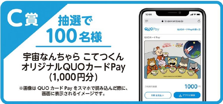 【C賞】宇宙なんちゃら こてつくんオリジナルQUOカード Pay(1000円分) 100名様