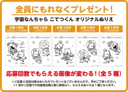 ③ さらに、もれなく応募者全員に「宇宙なんちゃら こてつくんオリジナル塗り絵(5種)」をプレゼント!