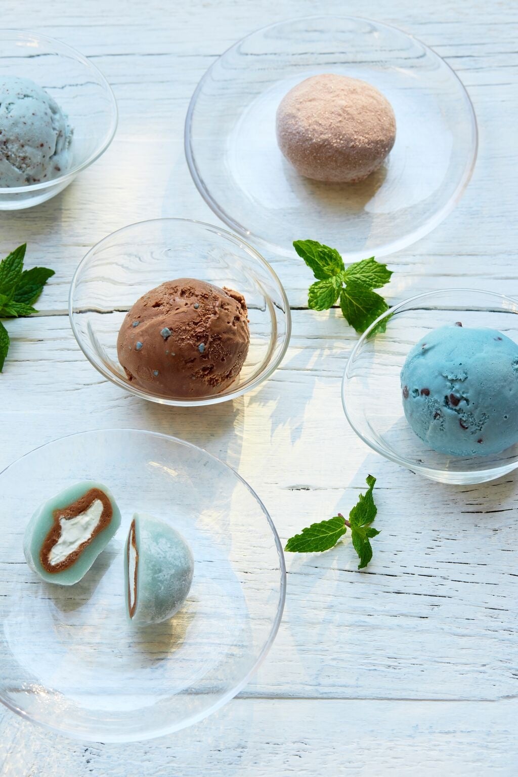 昨年もご好評いただいた「素材を生かしたアイス チョコミント」、「素材を生かしたアイス チョコミント クール」に加え、今年はミントが香るビターなチョコレートアイスにミント風味のキャンデーを入れた「素材を生かしたアイス チョコミント チョコレート」を新たに発売します。また、チョコチップ入りのミントクリームの大福と、チョコレート餡とミントクリームを包んだ大福の2種を詰め合わせたさわやかな香りとやさしい甘みが特長の「チョコミントのクリーム大福アソート」を発売します。
