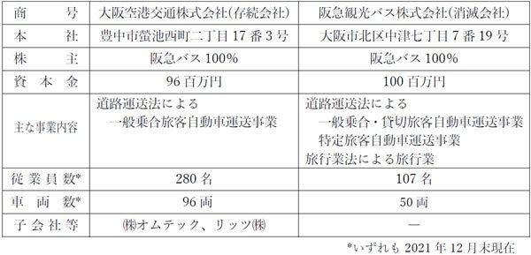 大阪空港交通を合併(存続)会社、阪急観光バスを被合併(消滅)会社とする吸収合併により行います。