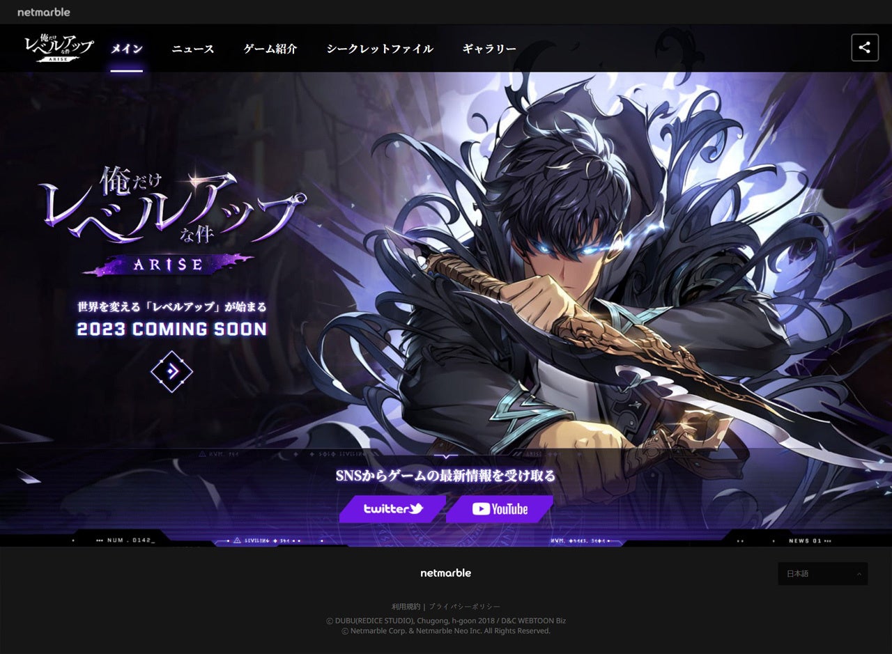 ネットマーブルは、2023年内にスマートフォン及びPC向けにサービス予定の最新アクションRPG『俺だけレベルアップな件:ARISE』(開発:Netmarble Neo)の公式サイトを、本日3月23日(木)に公開したことをお知らせいたします。