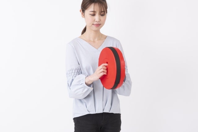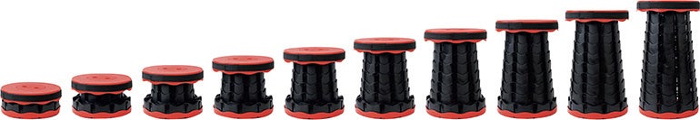 たたんだ状態の「DIME FOLDING STOOL」の高さは6.7cm。最も高い状態で45.5cmまで、10段階で高さ調節できる折りたたみ式の椅子だ。耐荷重はなんと150kg。見た目はスタイリッシュだが、しっかりした作りになっている。