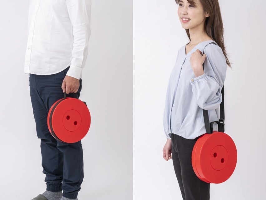また、急な来客用としても使えるので、いくつか収納や倉庫にしまっておくのも便利。コンパクトに縮めることができるので、使わない時は、収納やクルマのトランクにしまっておけばじゃまにもならない。また、肩にかけて持ち運べるように、ベルトも付いている。