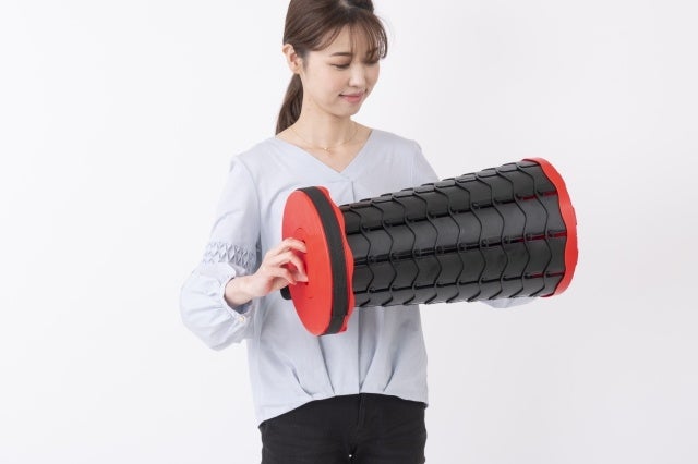 使い方は、いたって簡単。両サイドを両手で持って、アコーディオンのように引いたり、押したりして、高さを調節するだけ。