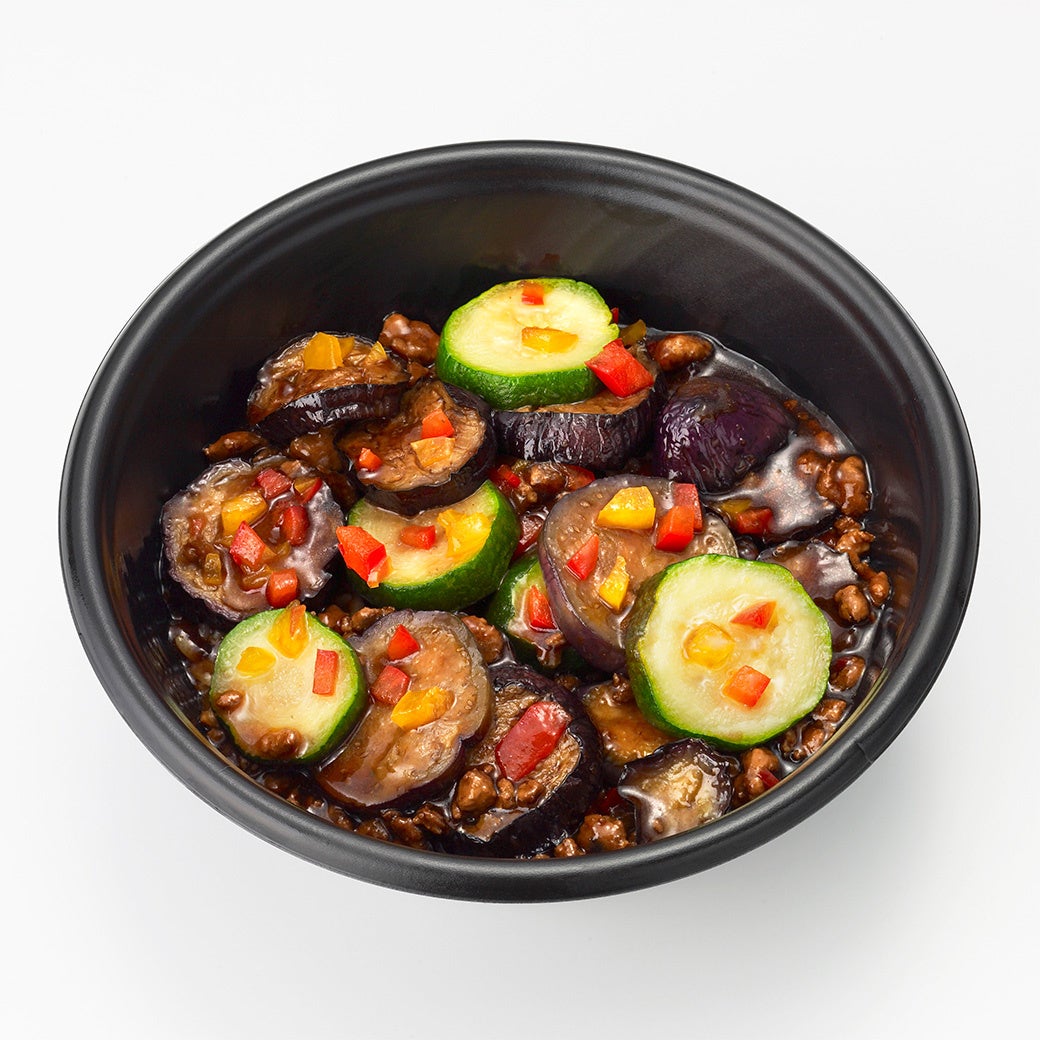 豆板醤の辛味と甜麺醤のコクが、茄子とズッキーニのおいしさを引き出した一品です。