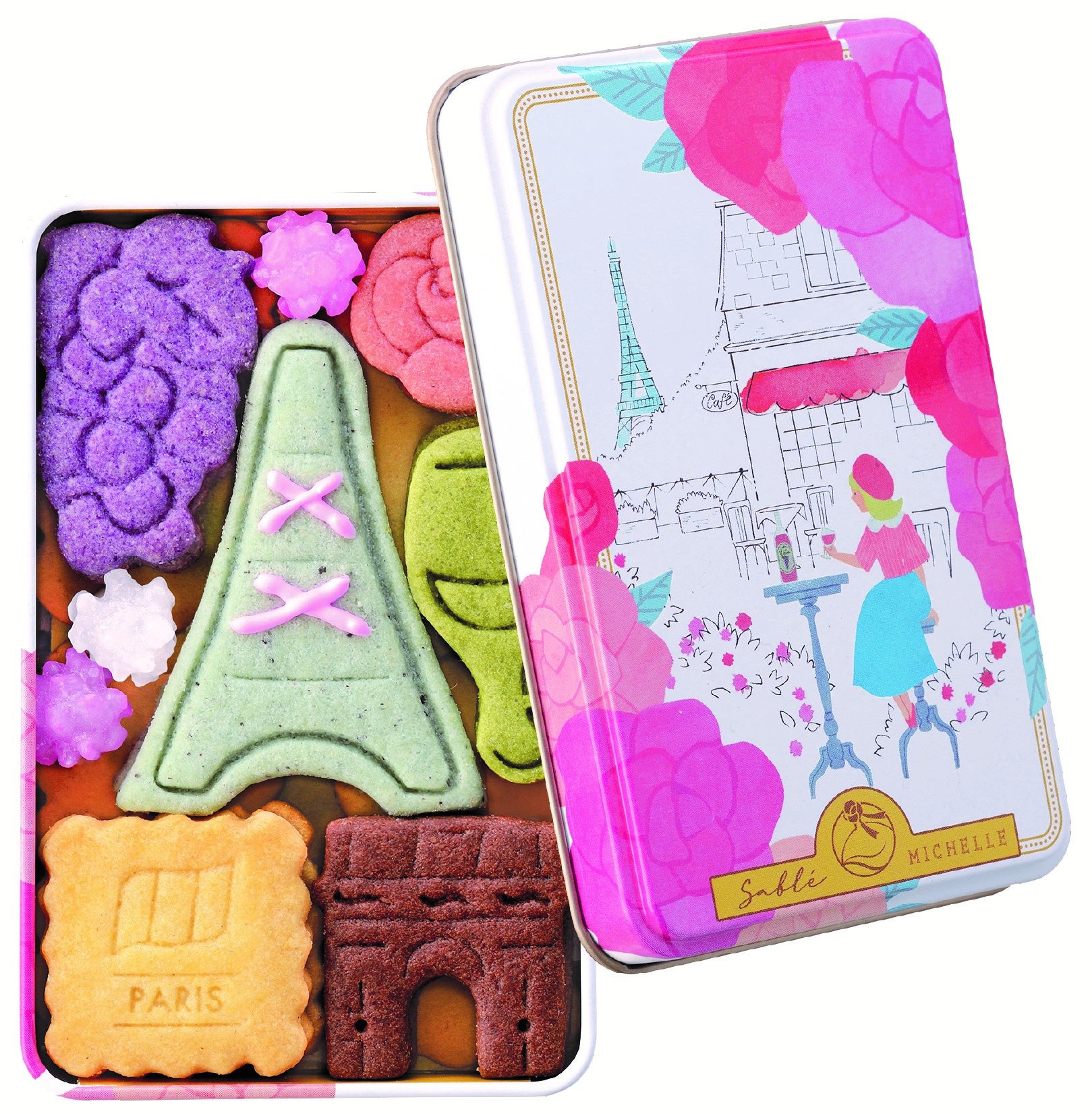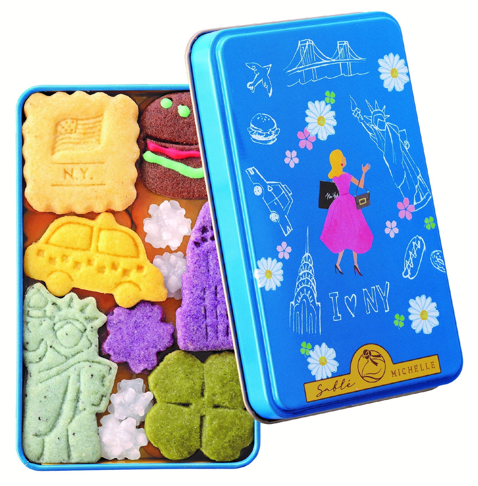 世界の国、都市をテーマにしたサブレ缶。可愛らしいデザインの小さな缶にそれぞれの国、都市にちなんだモチーフのサブレが入ります。