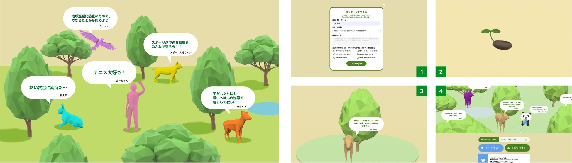 - 出場選手への応援メッセージなどを送ると「森」が広がる参加型3Dアニメーションコンテンツ「FOREST of WISH by Rakuten」を公開 -