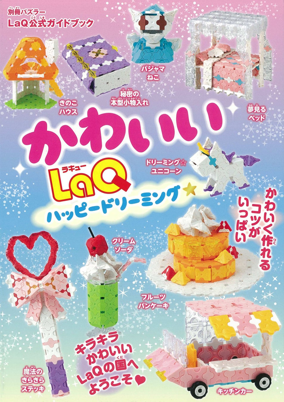 LaQ(ラキュー)はヨシリツ株式会社が製造する、まったく新しい発想から生まれたパズルブロックです。角度のついた連結パーツを使って、平面・立体だけでなく、曲面や球などあらゆる形が表現できます。小さなお子さまの知育としての活用はもちろん、大人の創作活動としても楽しめると年齢問わずファンの多いブロック玩具です。本シリーズは、ヨシリツ株式会社から全面協力を得た公式ガイドブックです。初心者向け、上級者向け、テーマごとなど、さまざまなラインナップから目的や興味に合わせてお選びいただけます。