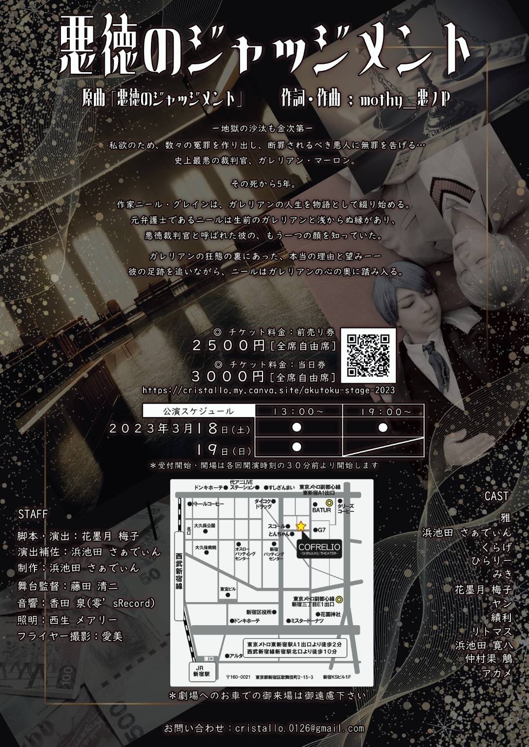 社会人演劇ユニットcristallo『悪徳のジャッジメント』が2023年3月18日 (土) ~2023年3月19日 (日)にコフレリオ新宿シアター(東京都新宿区歌舞伎町2-15-3新宿KSビル1F)にて上演されます。