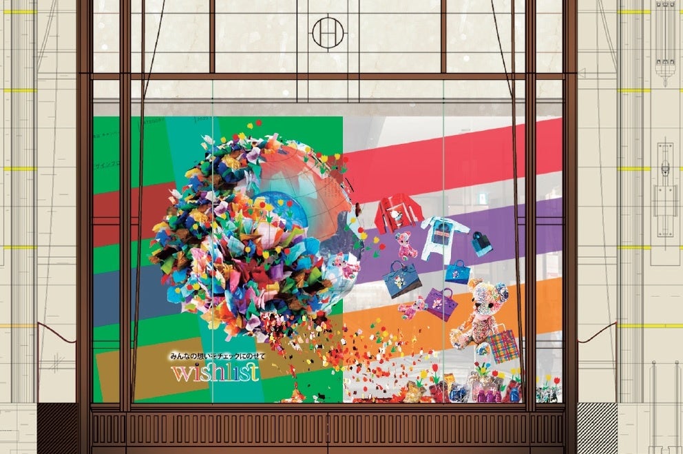 大切な人を想う気持ちが交差する様子をチェックに例え、チェック柄を象徴としモチーフにしました。『wish list』からの7つのテーマを選び、各ウィンドーのテーマに設定。「ファミリア」の考えるこどもたちの未来への願い(=wish)に共感し、そこに阪急うめだ本店の想いをのせて、7面のウィンドーで表現しています。