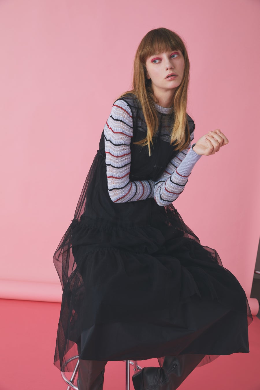 スリーブレスなチュールワンピースはレイヤードも自由自在。