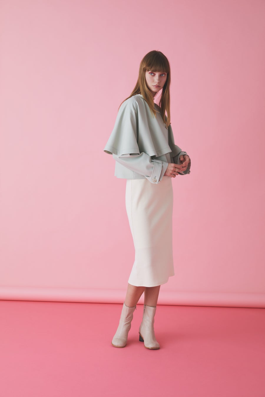 メロー仕様のハイネックなので、アウターから首元のデザインを覗かせると顔周りの華やかさがアップします。