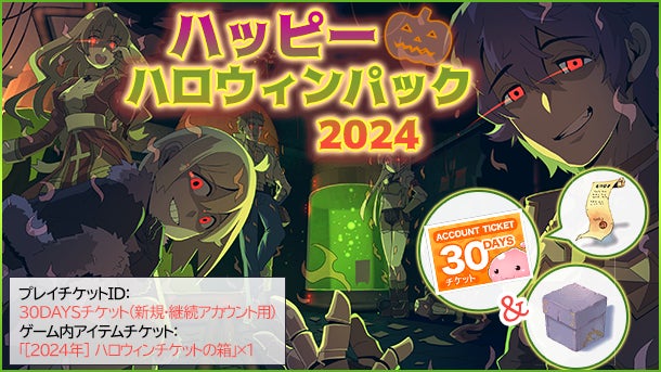 ▼プレイチケット 30DAYSチケット(新規・継続アカウント用) ▼ゲーム内アイテムチケット 「[2024年] ハロウィンチケットの箱」 |