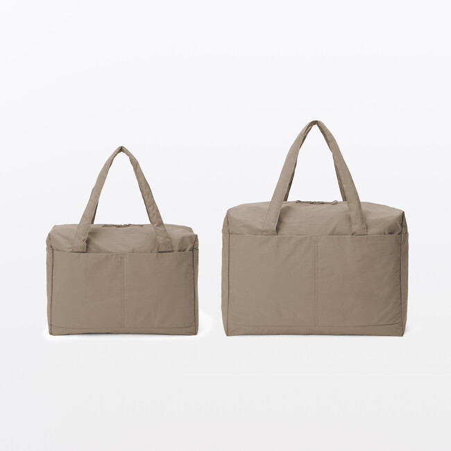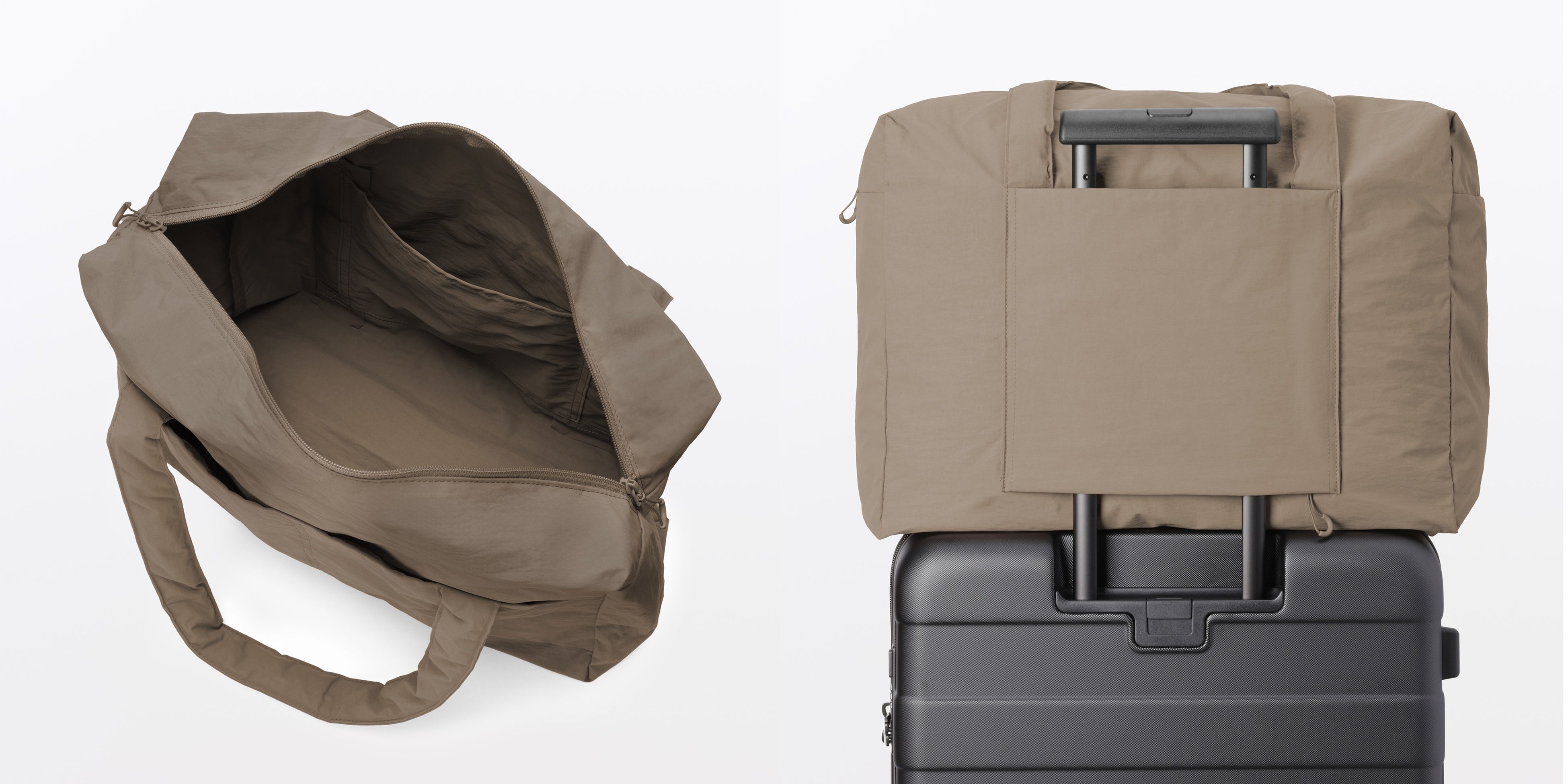 キャリーケースとあわせて使いやすいよう設計した、日常から旅行まで幅広く使えるバッグを新たに発売します。キャリーケースのバーを通せる仕様とし、移動中も安定して持ち運ぶことができます。生地には撥水加工を施した使いやすい設計としました。正面にはポケットを2つ、内側にもポケットを備え、荷物を整理しやすくしています。正面ポケットは高さを持たせた構造とすることで、物を入れても口元が広がりにくく、すっきりと収まります。付属の収納ポーチは単体でも使用できます。