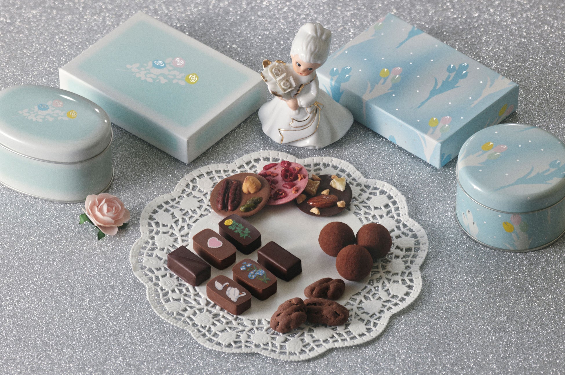2026年のバレンタインは「朝露」がテーマ。「淡い色調の中に。光を反射してきらめく銀色のしずく。すぐに消えてしまいそうな儚くて繊細な世界。」――そんな「朝露」を淡い色調で儚く繊細に表現しています。