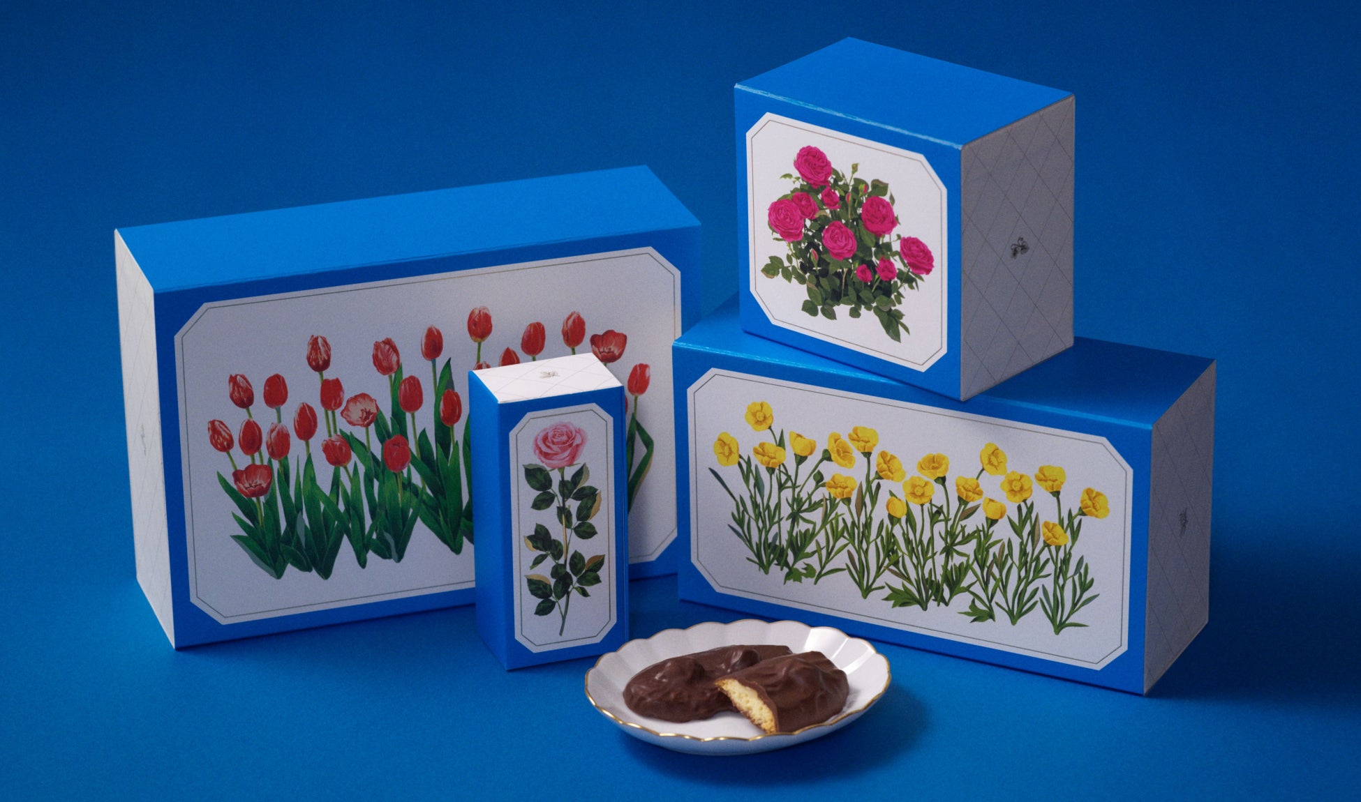国産バターでくちどけよく焼き上げたお花型の生地の中心に、なめらかなチョコレートを入れたかわいらしい焼き菓子です。