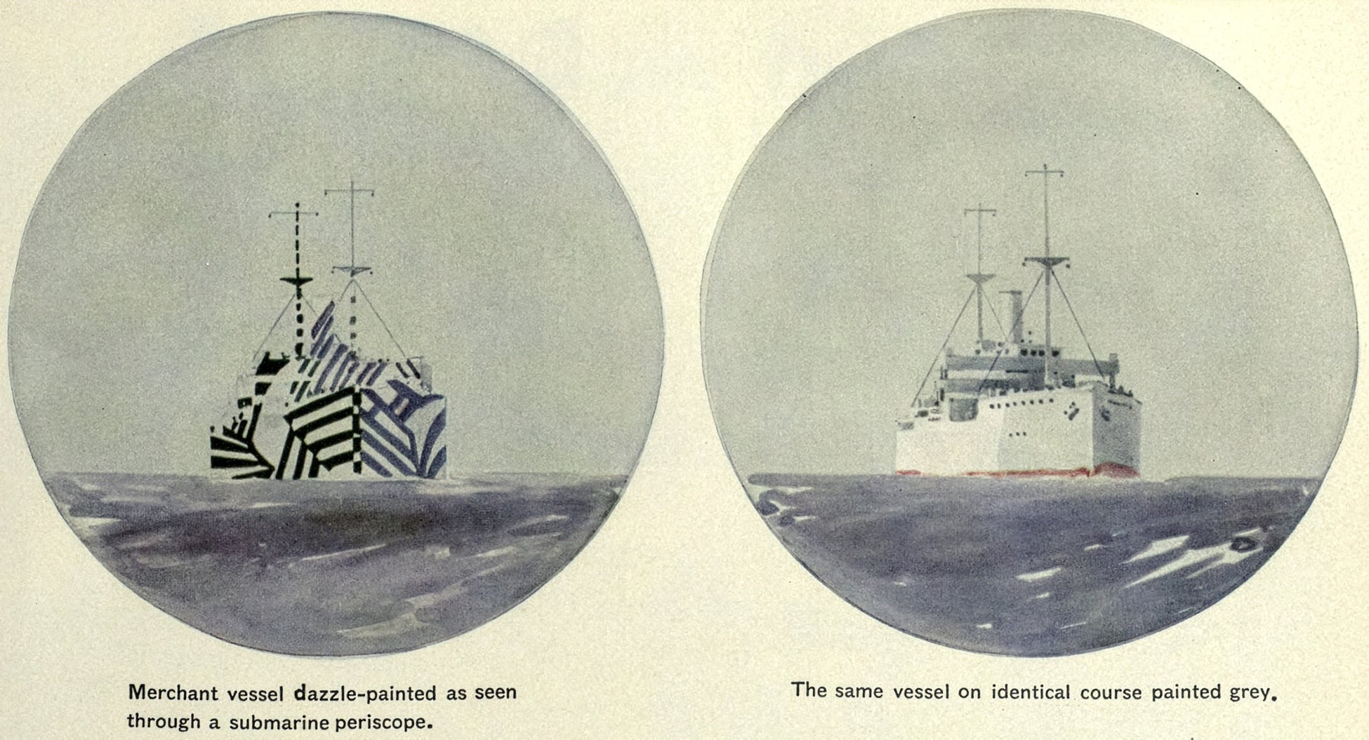 通常の迷彩が風景に溶け込んで存在を隠そうとするのに対し、ラズル・ダズル迷彩は逆に目立たせた上で敵を幻惑させようとする、実に異質なパターンだったのです。