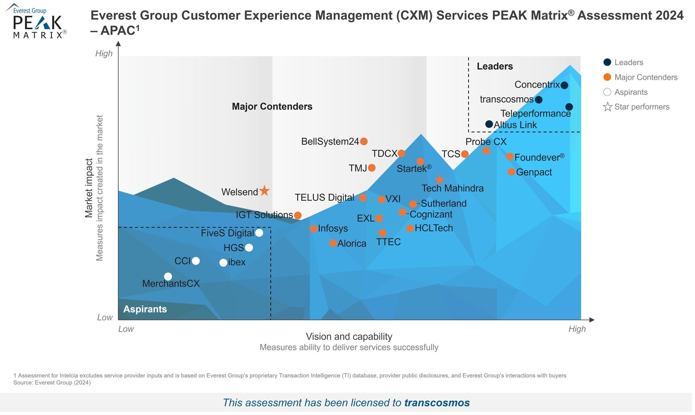 トランスコスモス、エベレストグループが発表したアジアパシフィック地域のCXベンダー調査において、4年連続で「リーダー」に認定