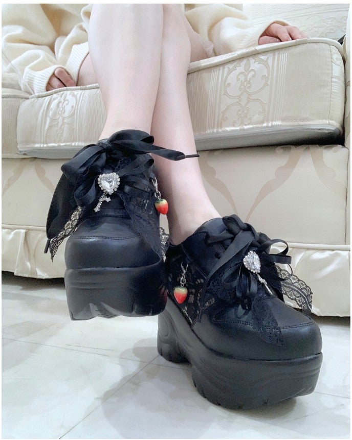 みんな大好き厚底スニーカーに十字架×チェーンベルト付き。さらに小悪魔感アップするビックリボンも付いています♡