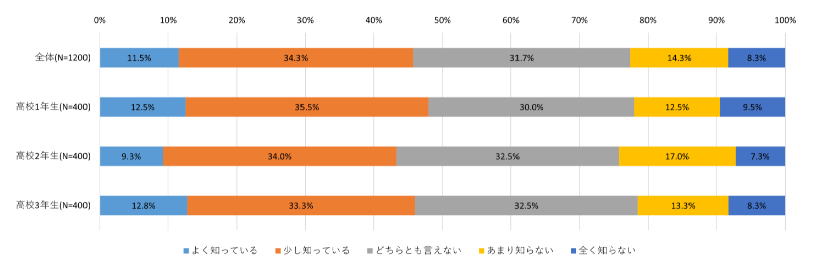 子ども自身のキャリアについてどの程度話しているか聞いたところ、「話している」は53.5%(「頻繁に話している(9.7%)」+「たまに話している(43.8%)」の合計)だった。保護者が子ども自身の歩みたいキャリアをどの程度知っているかは、「知っている」が45.8%(「よく知っている(11.5%)」+「少し知っている(34.3%)」の合計)となった。【図4、5】