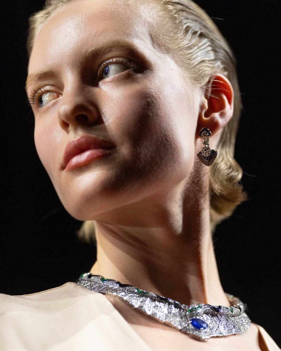 ガラディナーが開催されたヴィラ アルコナーティの演劇的な壮大さと、ショールーム会場となったヴィラ ネッキ・カンピリオのモダンな親密さの中で、ハイジュエリー、ハイエンドウォッチ、バッグ、フレグランスにわたる約650点の作品が展示されました。この特別な展示の中心には、160点以上の新作コレクション「エクレティカ」が据えられ、その中には14点のコンバーチブルな作品、50点以上のミリオネア ジュエリー、そしてコレクションの創造哲学を彫刻、絵画、建築を通して表現した9点の並外れた傑作「カポラヴォーリ(イタリア語で傑作の意)」が含まれています。