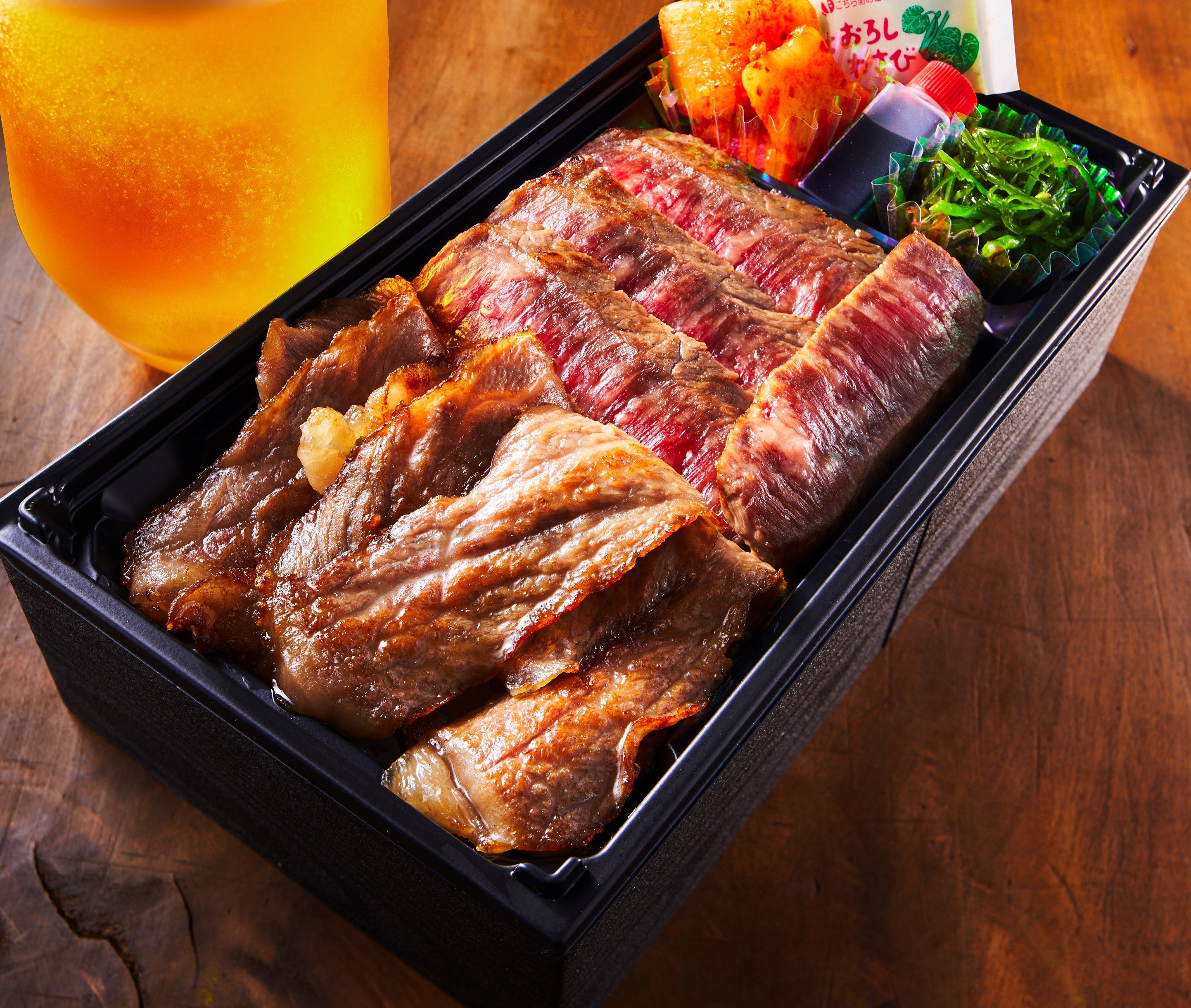 A5秋田牛 特上赤身ステーキ&特上カルビ焼肉の2色弁