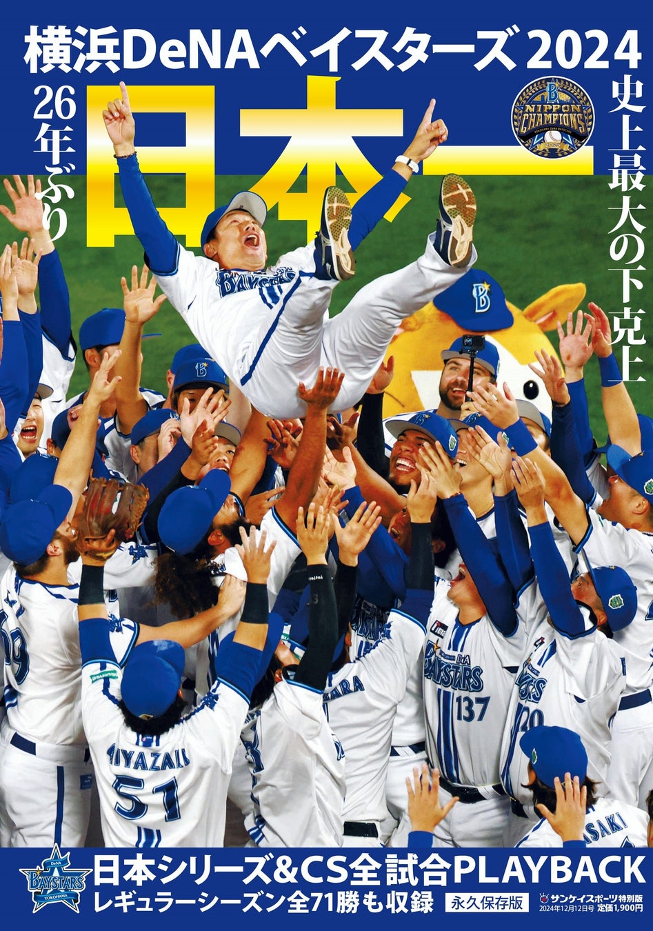 サンケイスポーツ(産経新聞社発行)は、1998年以来26年ぶり3度目の日本一に輝いたプロ野球DeNAの戦いを振り返る特別版「横浜DeNAベイスターズ2024 26年ぶり日本一」(税込み1900円)を神奈川県内のコンビニエンスストアや通販サイト「サンスポe-shop」などで発売しました。