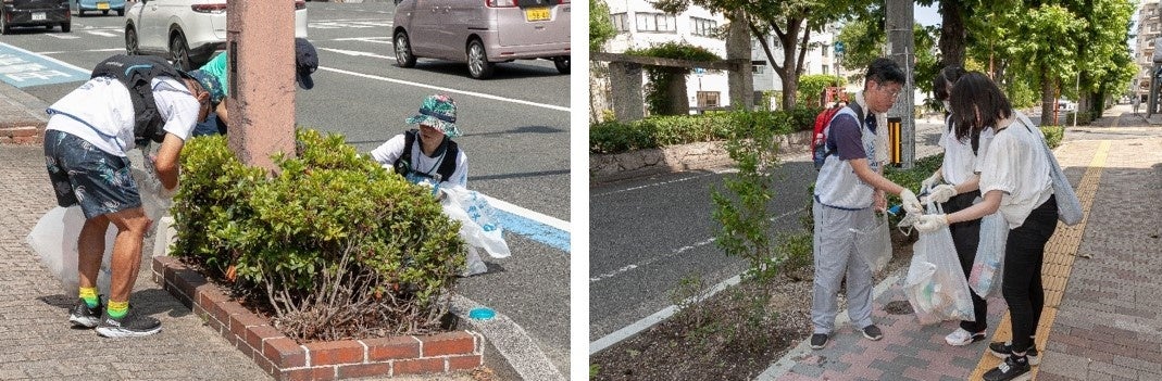 友人同士で参加したチームや学校や職場の仲間同士で参加したチーム、ご家族で参加したチームなど、県内外から多くのチームが参加しました。どのチームも気合十分で、スタート前の作戦タイムでは「どのルートを回れば効率的にごみを拾うことができるか」「役割分担をどうするか」など、意見を出し合いながら各チーム思い思いの作戦を話し合っていました。その後、出場者を代表してアサヒ飲料チームの代表者が登壇し選手宣誓を行った後、「CHANGE FOR THE BLUE」の掛け声で全チーム一斉にスタート。60分の激闘を繰り広げました。街には多くの空き缶、たばこの吸い殻、ナイロン袋、家庭ごみなど様々なごみが落ちており、参加者は競技に参加しながら、街に捨てられているごみの多さを改めて実感しているようでした。