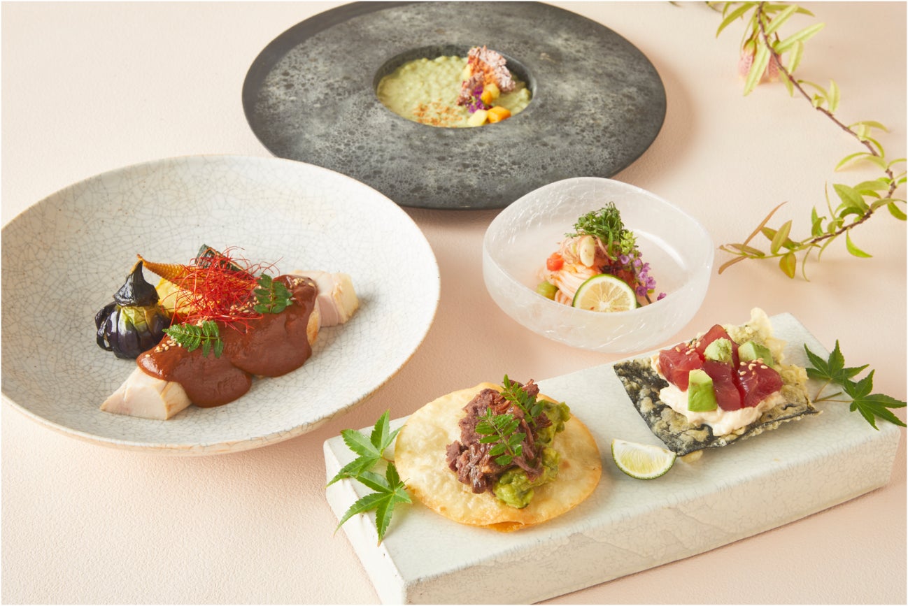 喫水線では、暑い夏にぴったりな、メキシコ料理と伝統的な和食を巧みに融合させた「喫水線メキシカンフュージョン」をご用意いたします。昨年、メキシコのホテルにて開催された「和食の祭典」においてゲストシェフを務めた喫水線の料理長天田内(あまたない)が、現地での体験を元に、日本の食材や料理の伝統的な技法を融合させ、喫水線らしい遊び心のある独創的なメニューをご提供いたします。和の粋とメキシコのエッセンスをが織りなすここでしか味わえない味覚の旅をお楽しみください。