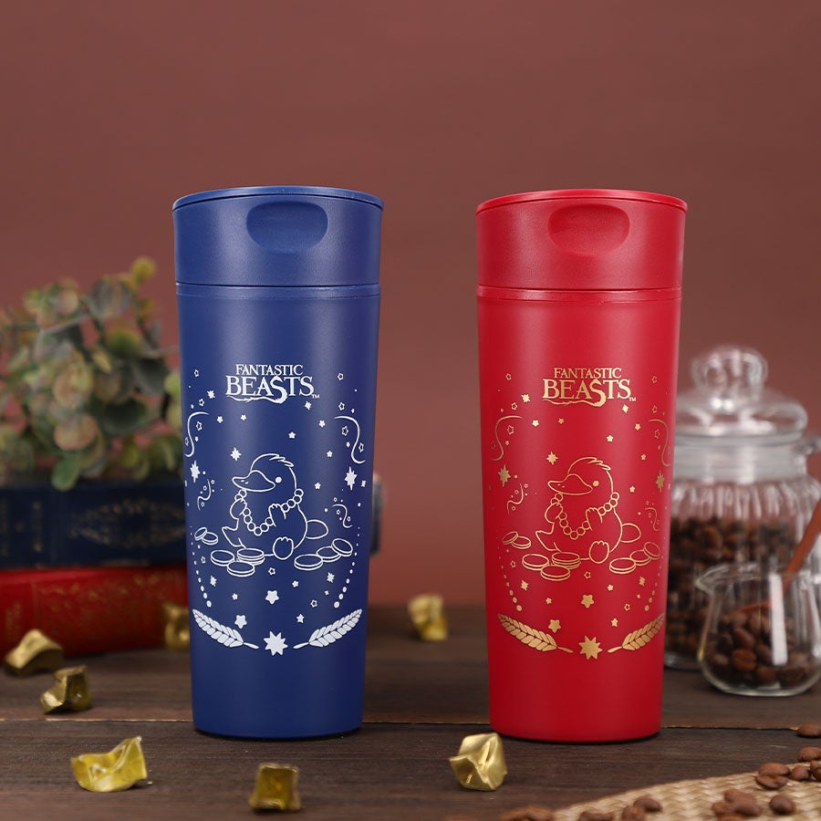 ハリー・ポッター マホウドコロ ランドマークプラザ店は、2025年4月19日(土)でオープン1周年を迎えます。これを記念して、店内で商品を11,000円(税込)以上お買い上げいただいたお客様に、映画『ファンタスティック・ビースト』に登場するふわふわで愛らしい姿が大人気の魔法動物ニフラーをデザインしたオリジナルタンブラーをプレゼントいたします。カラーはレッド×ゴールド/ネイビー×ホワイトの2色から選択可能で、ニフラーが大好きなキラキラ光るコインに囲まれた絵柄がプリントされています。
