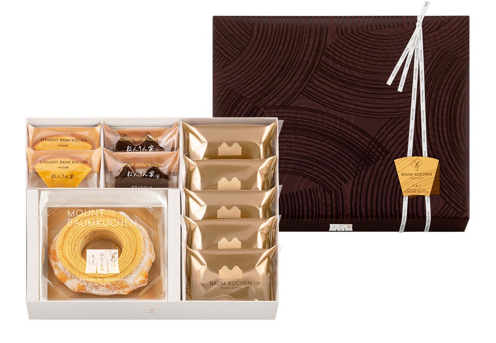 内容は、「ねんりん家」の世界をたっぷりと満喫する4味の詰め合わせ。濃厚バター風味の代表作『マウントバーム しっかり芽』は、見た目も華やかにホールサイズでご用意しました。