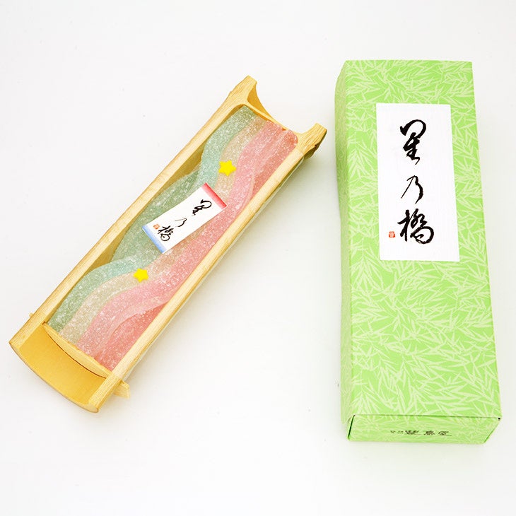 天の川を錦玉で、織姫と彦星を雲平であらわした和菓子です。
