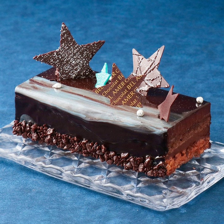 “夜空”をイメージしたブルーのラインがアクセント。ほろ苦いビターガナッシュと、しっとりしたアーモンドの生地が好相性です。